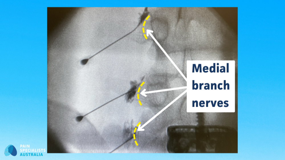 At Pain Specialists Australia, our experts confirm the diagnosis with a diagnostic medial branch block. Using live X-ray guidance, a small amount of anaesthetic is placed on the tiny nerves that supply the facet joints. If pain eases, it proves the joints are the true source and helps guide the next step in treatment.
